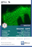 La mention de Master « Biologie Santé », co-accréditée par les universités de Rouen-Normandie et Caen-Normandie. Cette co-accréditation s’inscrit dans le cadre d’une volonté affirmée de proposer une offre structurée et cohérente à l’échelle de la Région, permettant d’optimiser un affichage national.Cette formation se décline en deux parcours au niveau du master 2 : « Oncologie, Immunologie Génétique » et « Physiologie systémique et physiopathologie intégrative – biothérapies